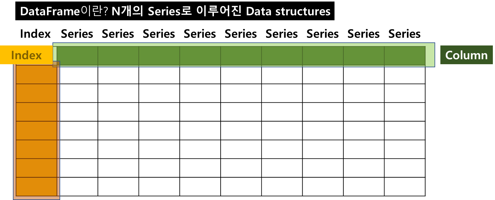 * 데이터프레임은 여러개의 시리즈로 이루어졌다고 보면 된다.