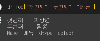 # 인덱스는 첫번째에서 두번째까지, 컬럼은 메뉴만 조회