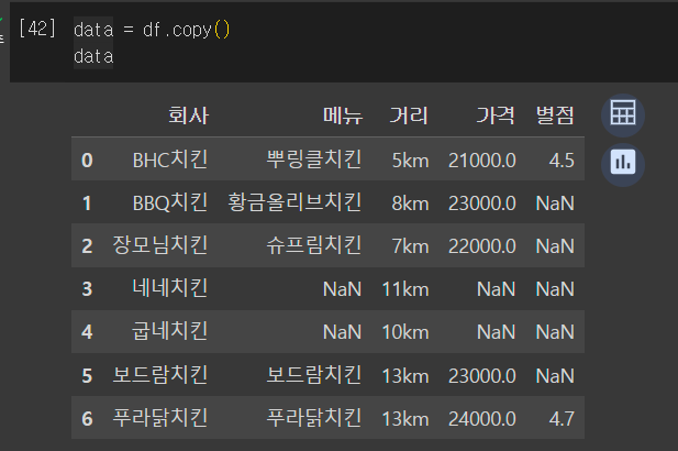 - 깊은 복사(deep copy) ~ data = df.copy() [서로 개별적으로 인식되어 가공하여도 df가 변경되지 않는다.]