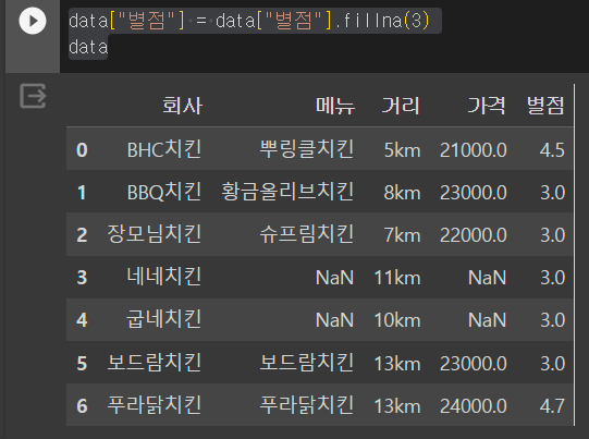 data["별점"] = data["별점"].fillna(3) # 별점의 결측치를 3으로 채움