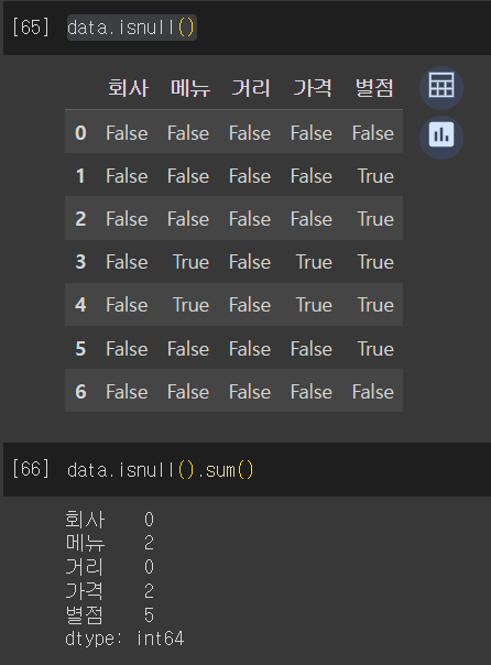 data.isnull() # 컬럼별 T/F 변환 ~ Null이면 T