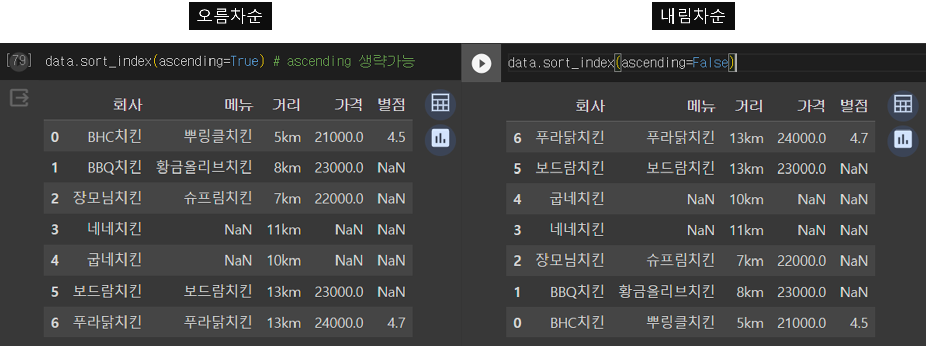 data.sort_index(ascending=True) # 오름차순(ascending 생략가능)
