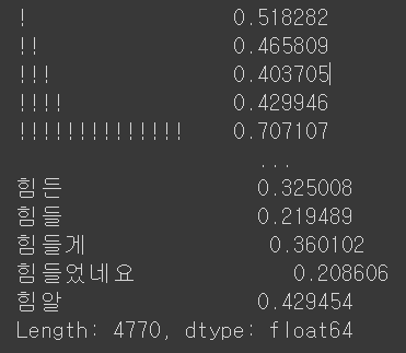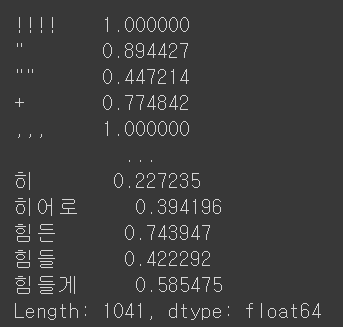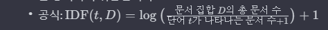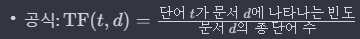 TF_model = TfidfVectorizer(tokenizer=tokenizer.morphs, max_df=5, min_df=2, stop_words=["은","는","이","가"])